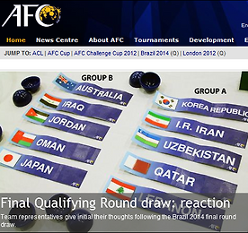 한국 축구 대표팀의 2014 브라질 월드컵 아시아 최종예선 상대국이 결정됐습니다. 아시아축구연맹(AFC) 조추첨에 의해 이란, 우즈베키스탄, 카타르, 레바논과 함께 A조에 편성됐습니다. B조에서는 호주, 일본, 이라크, 오만, 요르단이 이름을 올렸습니다. 각조 1~2위 팀이 월드컵 본선에 진출하며, A조 3위와 B조 3위 플레이오프의 승자는 남미 5위팀과 격돌한 뒤 승리팀이 본선행 티켓을 받습니다. A조에 있는 국가들의 면면을 놓고 보면 한국의 8회 연속 월드컵 본선 진출 가능성이 큽니다. 한국의 최종예선 일정은 이렇습니다. [사진=브라질 월드컵 아시아 최종예선 조편성을 공개한 아시아 축구연맹 공식 홈페이지. 왼쪽이 B조, 오른쪽이 A조 입니다. (C) the-afc.com] 2012년 : 6월 8일 카..