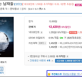YES24 썸네일형 리스트형 편의점택배 받는법, 집이 아닌 CU에서 받았어요 오늘 저녁에 CU에서 베스트셀러 책을 수령했습니다. YES24에서 주문했던 베스트셀러 책을 받기 위해 집이 아닌 CU에서 받았던 것이죠. 편의점픽업 형태로 말입니다. 이쯤에서 편의점택배 받는법 궁금하신 분들이 있으실 겁니다. 택배로 받아야 할 물건은 집에서 받는 것이 일반적이나 인터넷 서점에서 책을 구입할 때 배송을 편의점픽업으로 설정해서 받는 경우도 있습니다. 편의점택배 받는법 및 후기를 올립니다. 종이책을 인터넷 서점에서 구입하는 분들이 많을 겁니다. 저는 오랫동안 그랬는데 최근에는 집이 아닌 편의점에서 책을 받습니다. 집에 아무도 없을 때 택배가 오면 난감한 기분에 빠지죠. 그래서 제가 지정한 편의점에서 그것도 제가 원하는 시간에 책 받아서 좋았습니다. [사진=YES24에서 판매되는 여자 없는 남자.. 더보기 택배 픽업, YES24 도서 편의점에서 받았어요 저는 지금까지 포스트박스 편의점 택배를 이용하면서 이러한 생각을 해봤습니다. 'CU와 GS25에서 택배 받을 물건을 받으면 더 편리하지 않을까?'라고 말입니다. 알고봤더니 포스트박스에서는 택배 픽업 서비스를 운영중임을 알게 됐습니다. 택배 픽업은 포스트박스와 제휴한 쇼핑몰에서만 서비스 이용 가능합니다. 다시 말해서 자신이 해당 쇼핑몰에서 주문했던 물건을 집이 아닌 자신이 지정했던 편의점에서 받게 되는 것이죠. 정말 편리한 서비스라고 봅니다. 이 포스팅에서는 인터넷 서점 YES24 도서 주문을 통해서 편의점 픽업을 이용하는 방법을 소개하도록 하겠습니다. 그동안 YES24 도서를 집에서 받으셨던 분들이 많으셨을텐데 편의점에서 받는 방법도 있었습니다. YES24는 포스트박스의 제휴 쇼핑몰입니다. 얼마전에 YE.. 더보기 이전 1 다음